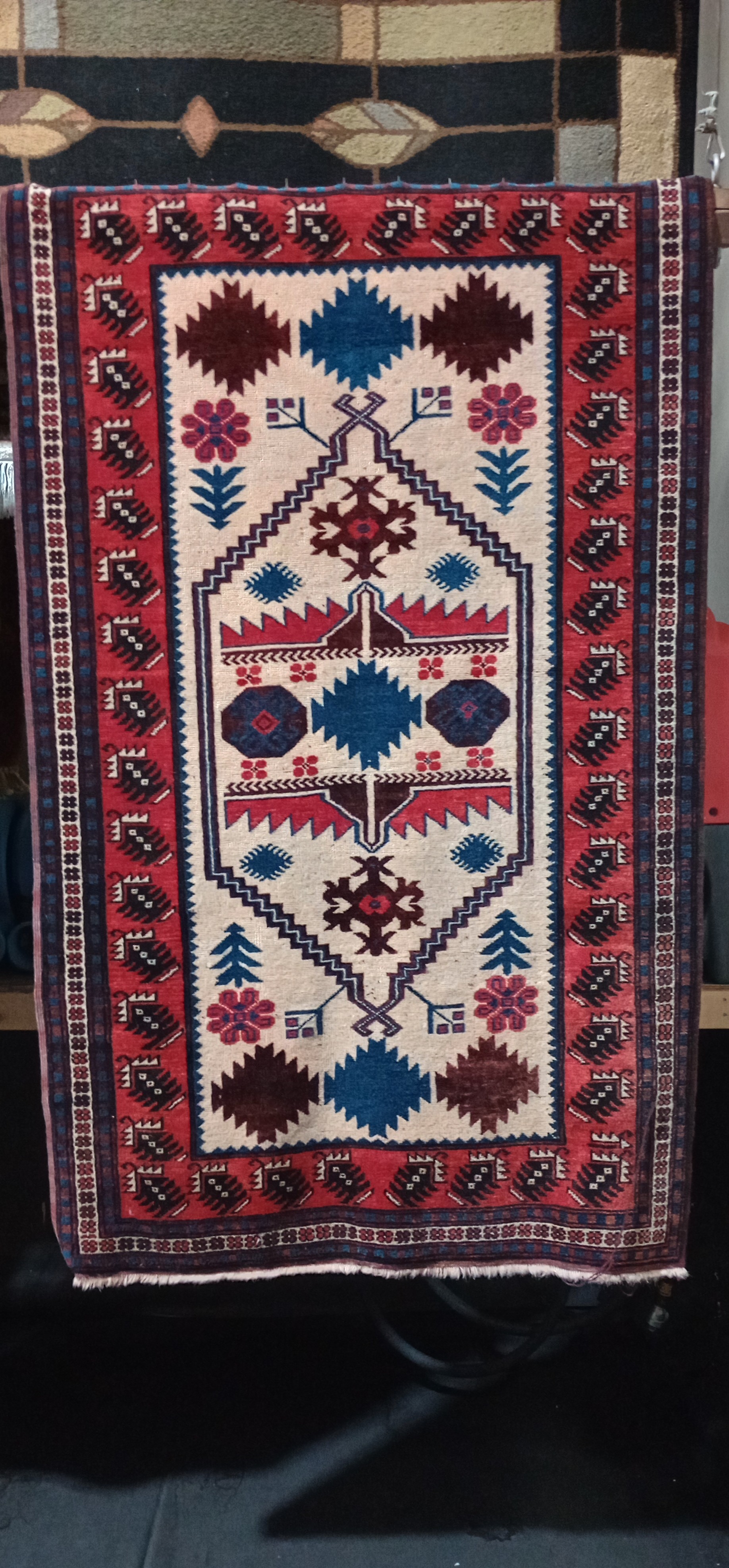 Betsy had just inherited some beautiful Turkish wool rugs, after reading our positive reviews online, she decided to bring them to us for washing. Prior to Betsy inheriting these rugs, they had been sitting in storage. Wool rugs in storage are at risk of moth damage, moths love to lay eggs in wool rugs that are not getting any foot traffic. Thankfully we were able to treat all of Betsy's rugs with our moth prevention solution. This treatment significantly reduces the risk of moth damage and gave Betsy some peace of mind when bringing the rugs into her home! Pictured is one of the gorgeous Turkish rugs Betsy brought in after being washed and treated with our moth prevention solution.